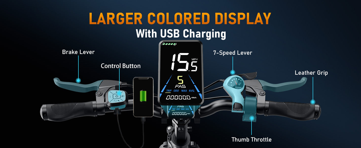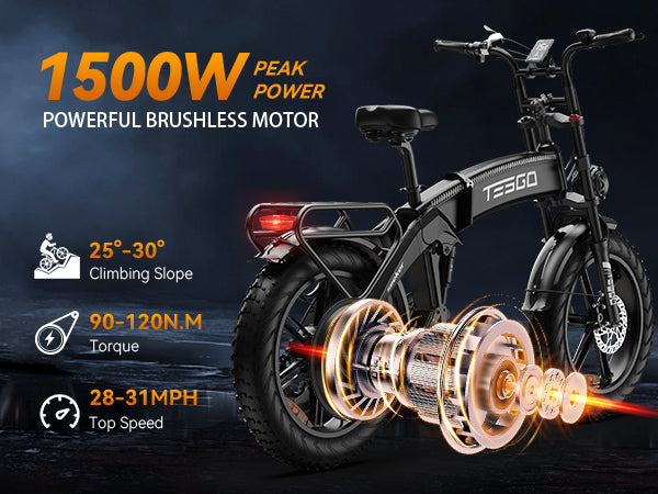 1000W 48V 17Ah | 20" Fat Tire Foldable E-Bike | Max 28MPH, 7-Speed