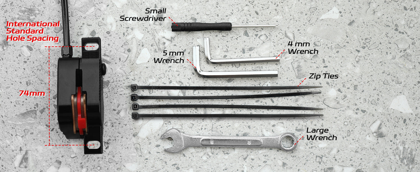 Unsere hydraulischen Scheibenbremssätze nutzen einen internationalen Abstand (74 mm/2,91 Zoll), sodass sie im Wesentlichen auf über 95 % aller E-Bikes auf dem Markt passen.