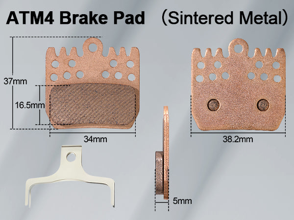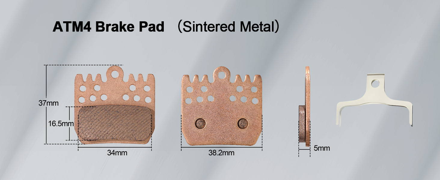 Bite point can be fine-tuned for aggressive or smooth braking. - Thick Sintered Metal Pads (5.5mm)Dimensions: 38.2 × 37 × 5.5mm (custom) vs. 26 × 15 × 1.9mm (standard) Heat-resistant, fade-free, and durable. Larger contact area boosts stopping power for long descents and off-road riding.