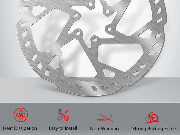 - 🚵【Fácil de montar】Simplemente desatornille los tornillos, monte el disco y vuelva a colocar los tornillos. ¡Es muy fácil mejorar significativamente el rendimiento de frenado!