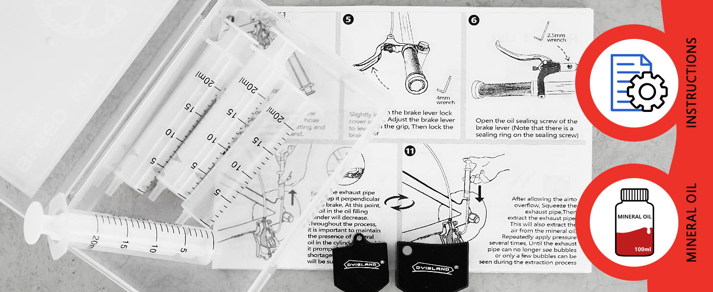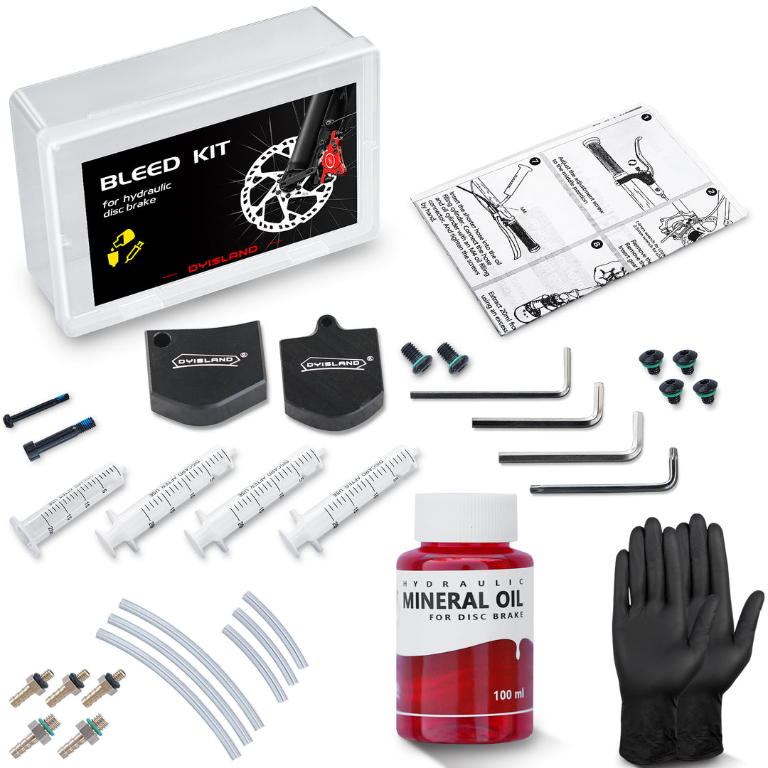 - 【Kit de purga de frenos】El kit de purga de frenos DYISLAND contiene 1 par de guantes de goma gruesos, 1 botella de 100 ml de aceite mineral, 3 jeringas de cambio de aceite, incluidas todas las herramientas y accesorios necesarios para un cambio de aceite.