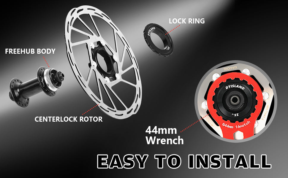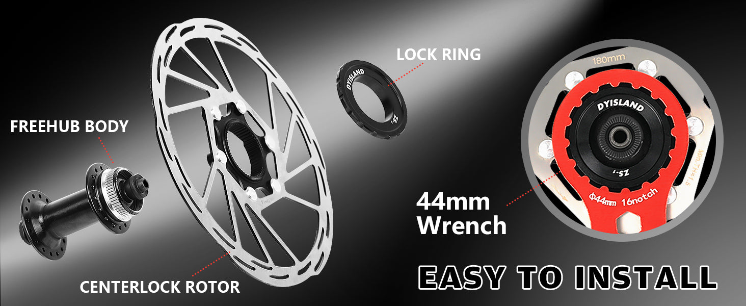 šµćEasytoMountćDuetotheintegrateddesign,theinstallationofthecentrallockingrotorisverysimple.Justalignthecenterlockwiththelockingringandtightenwithawrench,savingtimeininstallingandadjustingtherotor.