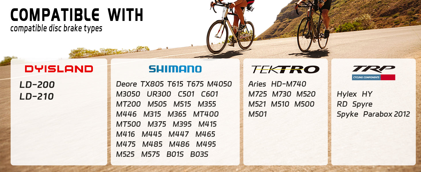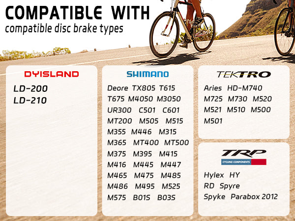 - 【Wide Compatible 】Disc brake pads competible with Shimano Deore Br-TX805 T615 T675 M4050 M3050 UR300 C501 C601 MT200 M505 M515 M355 M446 M315 M365 MT400 MT500 M375 M395 M415 M416 M445 M447 M465 M475 M485 M486 M495 M525 M575 B01S B03S;TRP Hylex HY RD Spyre Spyke Parabox2012;Tektro Aries HD-M740 M725 M730 M520 M521 M510 M500 M501;DYISLAND LD-200 LD-210